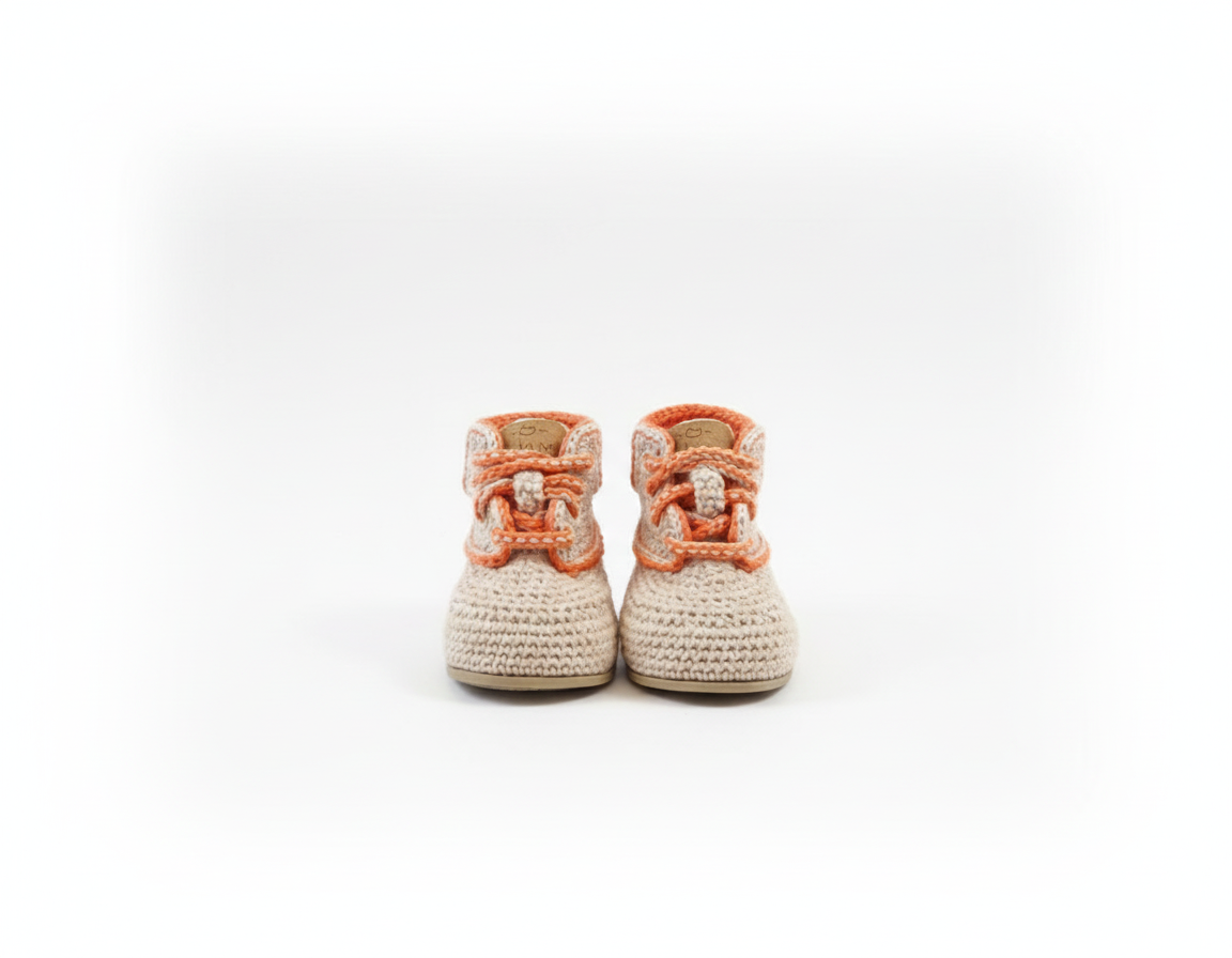 Cada par é trabalhado cuidadosamente, ponto a ponto, garantindo suavidade, segurança e uma sensação aconchegante no pezinho do bebé.