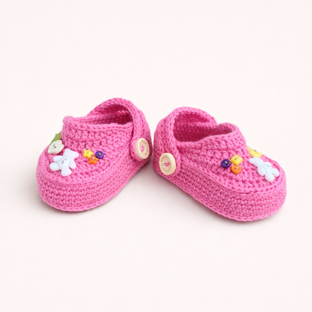 As cores suaves e o design respirável criam um sapatinho confortável e fresco, perfeito para acompanhar os dias mais quentes com um toque doce e natural.